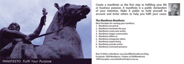 Translation Text: Provides an introductory paragraph to give context and meaning. Then lists nine principles for creating your manifesto. In hindsight a more specific blog link would have been better as a next step.