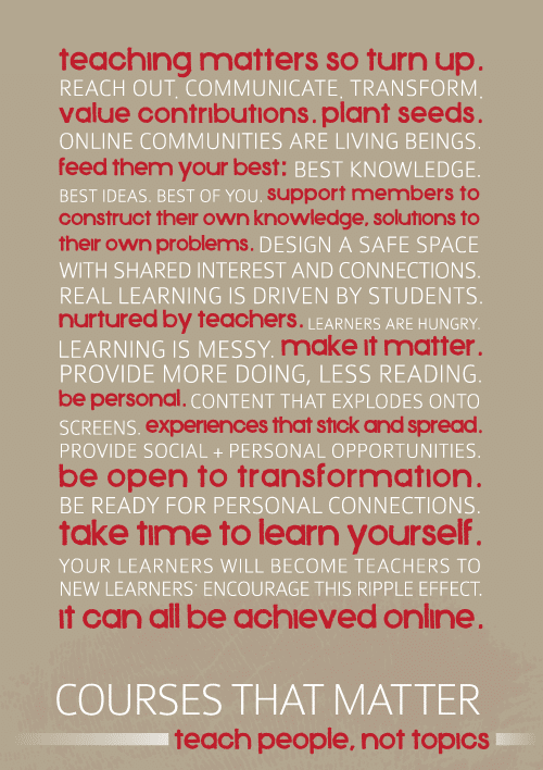 Read more about Ainslie’s Manifesto: http://coursesthatmatter.com/2011/02/teaching-matters-manifesto/