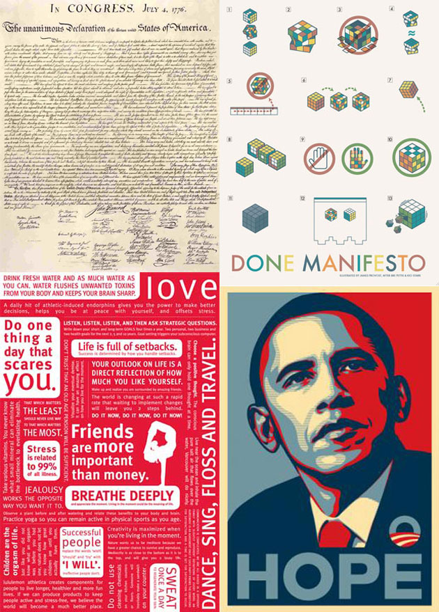 For a future blog post we’re compiling a list of the most visually appealing manifestos. If you find one or have a favourite add a comment below and we’ll add them to our list.