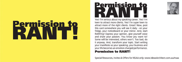 Do it well and your simple postcard may be kept on display for some time. I was chuffed to visit the office of a colleague who had participated in one of my presentations. My session culminated in giving out a postcard that captured my core message to each person. And, here it was! In her office, it was posted on her wall – six months later! Marketing mileage!