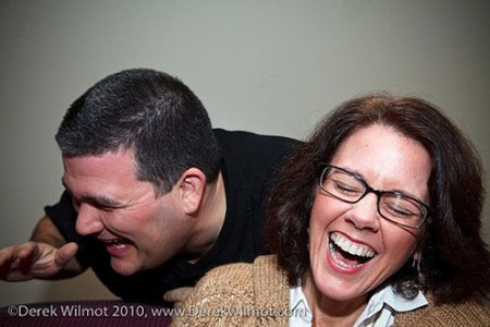 And, I think this explains everything! I think this photo was taken first. They cracked up laughing about something and the photographer snapped this one. And, less than a minute later whilst the laughter was still in the air, he snapped the first photo.