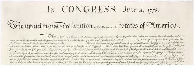 We hold these truths to be self-evident, that all men are created equal, that they are endowed by their Creator with certain unalienable Rights, that among these are Life, Liberty and their pursuit of Happiness.